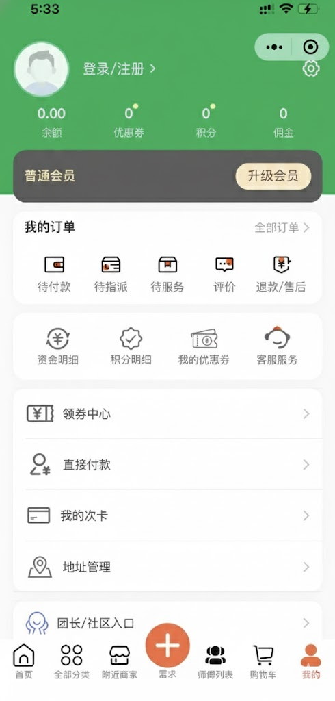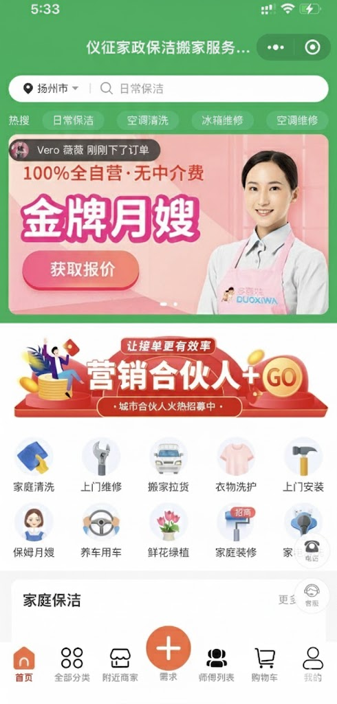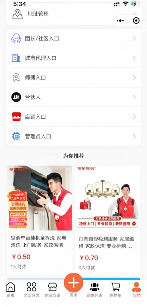 多商户o2o预约上门服务类小程序,可做家政服务,维修,到家服务得预约平台,同时支持在线支付购买商品,通过快递发货,支持店铺入驻,师傅入驻,两者可以接单,营销功能包含:积分抵扣,优惠券抵扣。