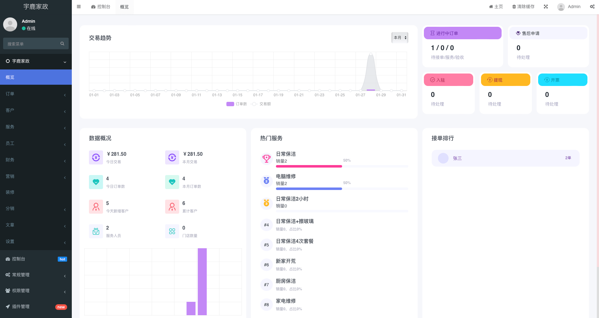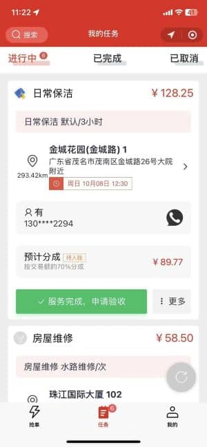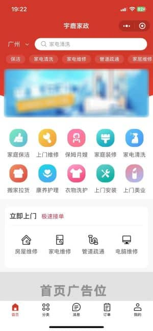 一款基于ThinkPHP+原生微信小程序开发的家政上门服务系统,支持预约上门、抢单、派单、分销(高级授权)、储值、积分、优惠券等功能,用户端+师傅端二合一的家政服务微信小程序。