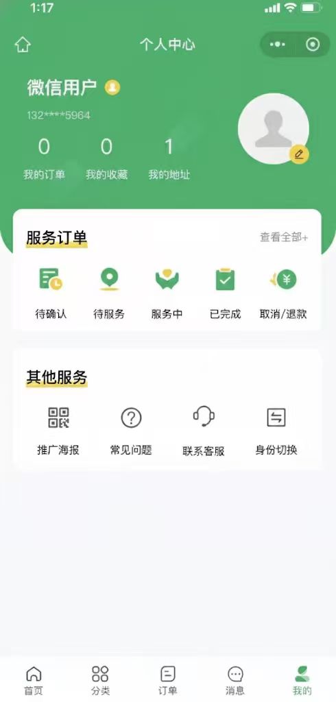 13、服务人员有自己的独立账号登录小程序,可以接单 查看订单状态、排班、查看收益、申请提现。