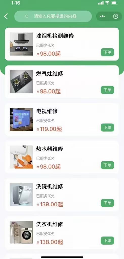 4、服务分类:家电维修、家政保洁、家电清洗等