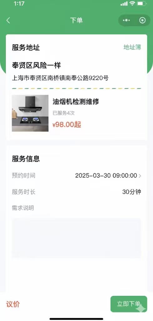 5、付费模式:支持固定价格服务和上门查看后服务人员现场定价两种模式