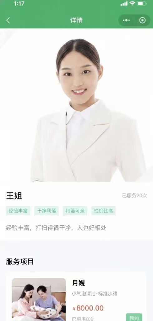 6、预约模式:每个产品后台可以设置是否需要预约服务人员