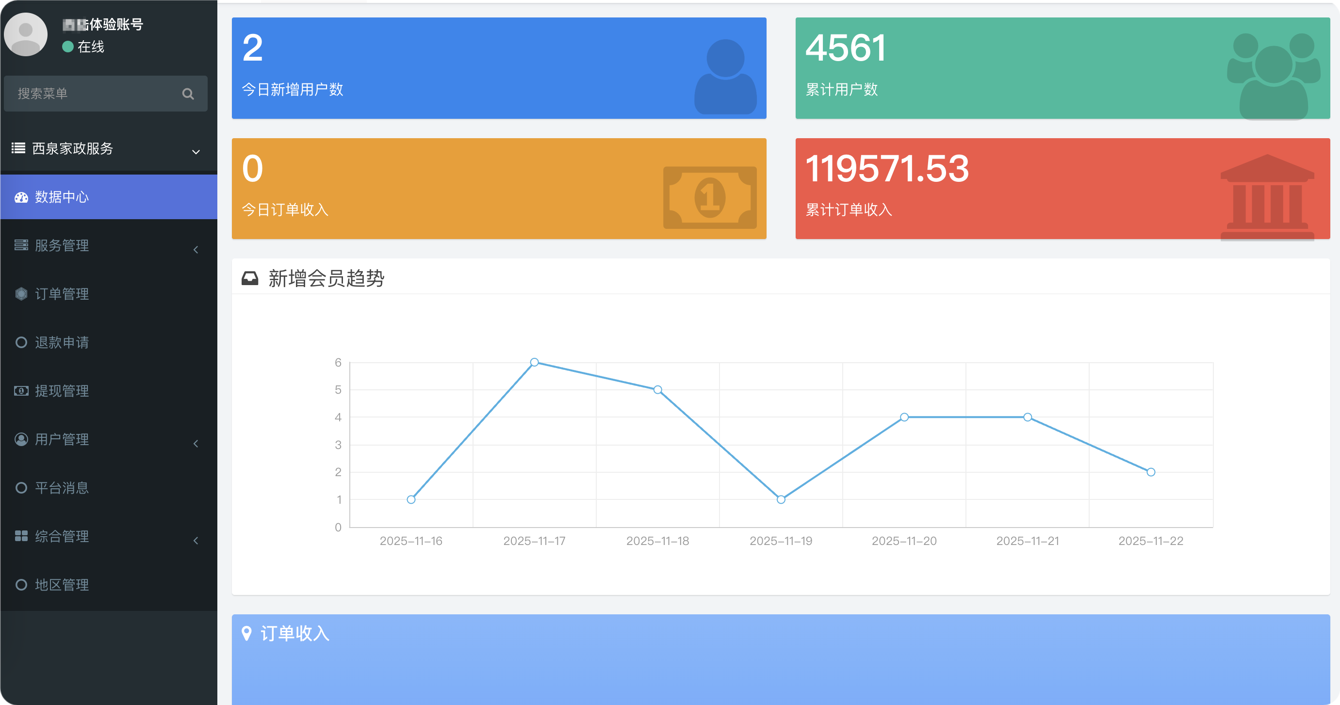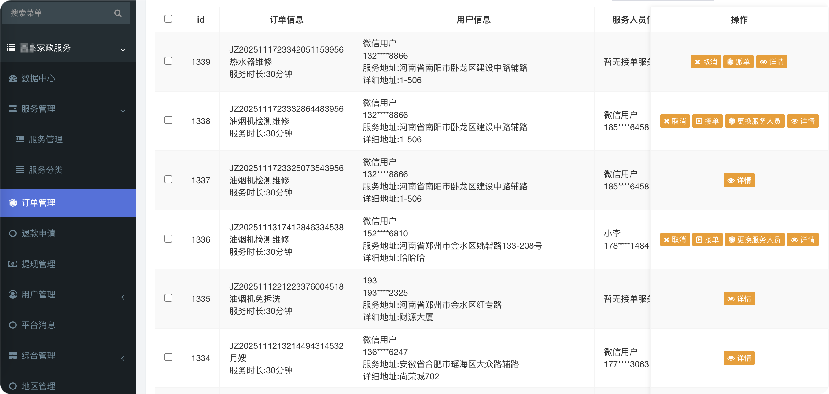 一款基于ThinkPHP开发的家政服务管理系统小程序,主要功能: