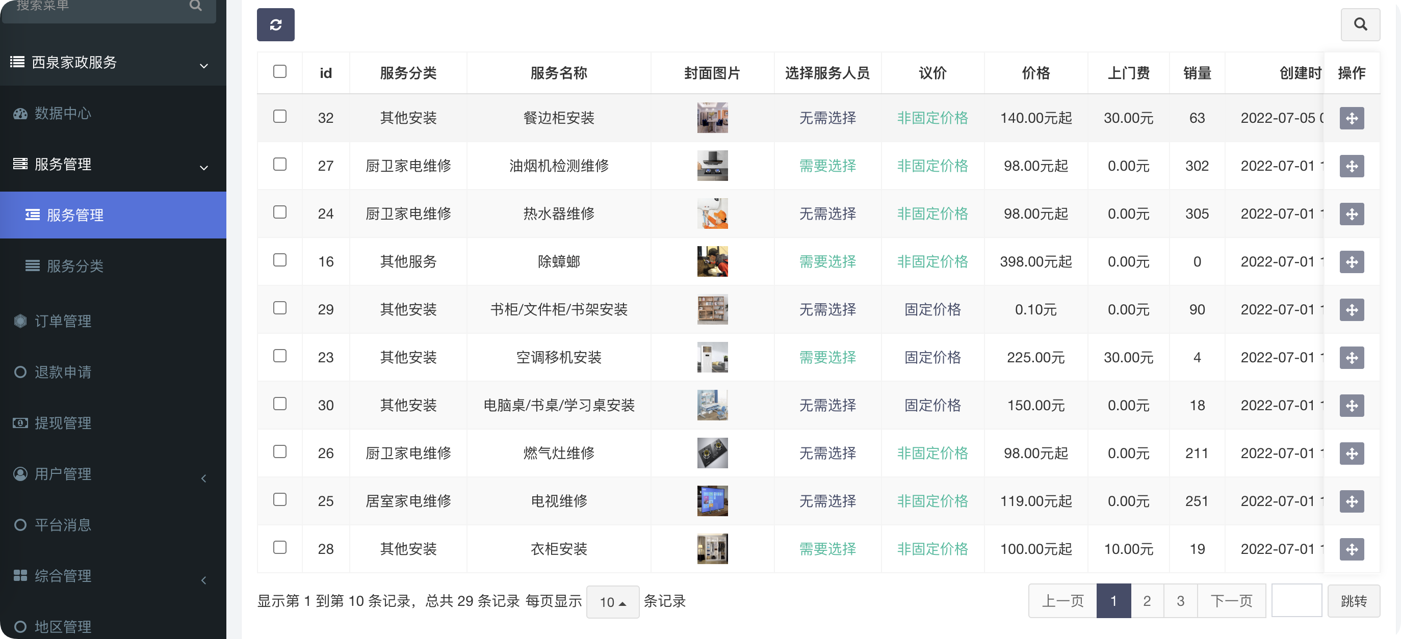 7、上门费:针对每个产品服务可单独设置是否需要上门费