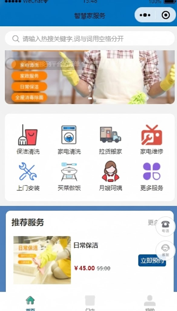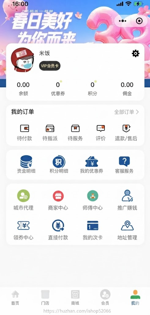 功能:服务管理、商品管理、订单管理、会员管理、师傅入驻
