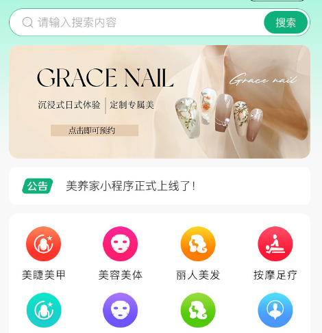 用户端功能模块:技师选择、预约服务、优惠券、订单、技师服务、收藏、售后、评价、问题反馈、商家等等更多功能