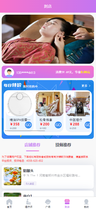 技师招募 技师端功能 佣金结算 接单功能 服务项目选择 服务范围选择 物料商城 动态管理 权限管理 门店管理 等等更多功能联系客服体验