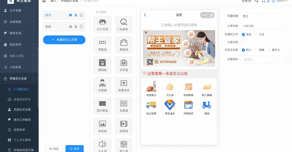 配送/物流、管理员/用户、系统配置,页面自定义DIY