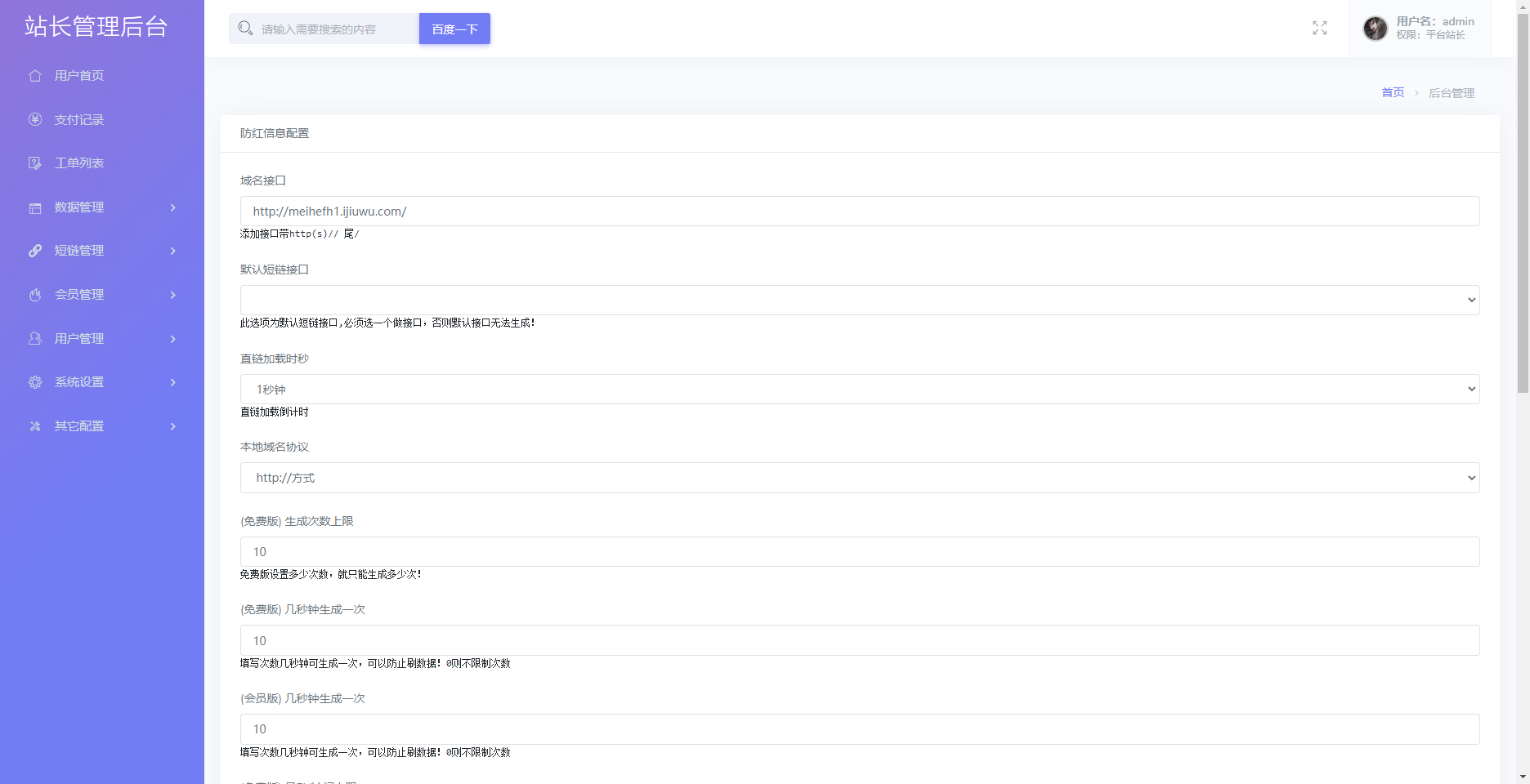 防红接口可用自己的域名做接口,也可以同系统对接,接口域名可设置普通用户或会员才可使用