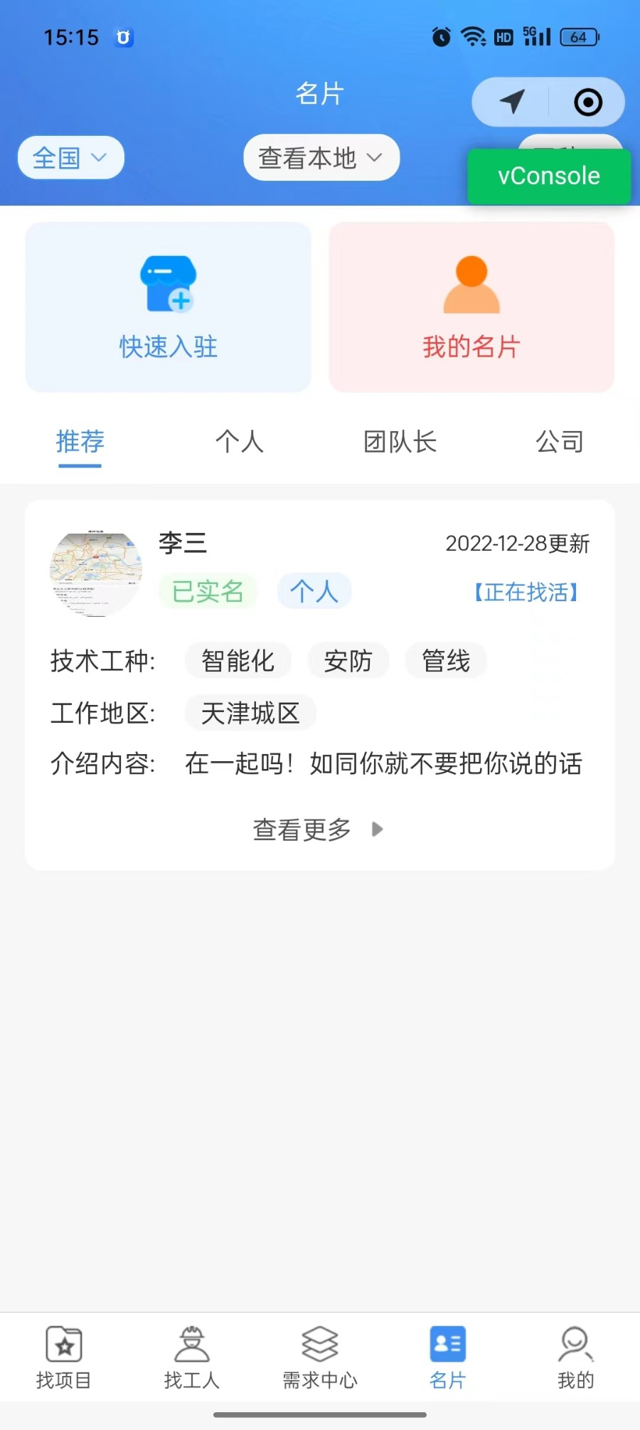 名片功能 :可以填写自己的信息 可以是个人 也可以是公司