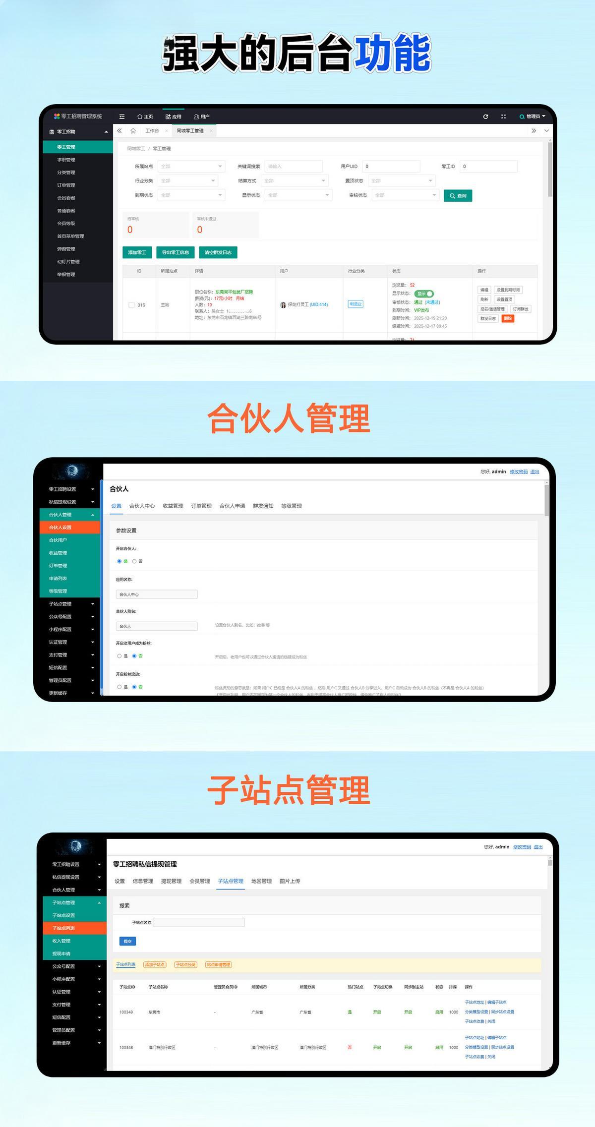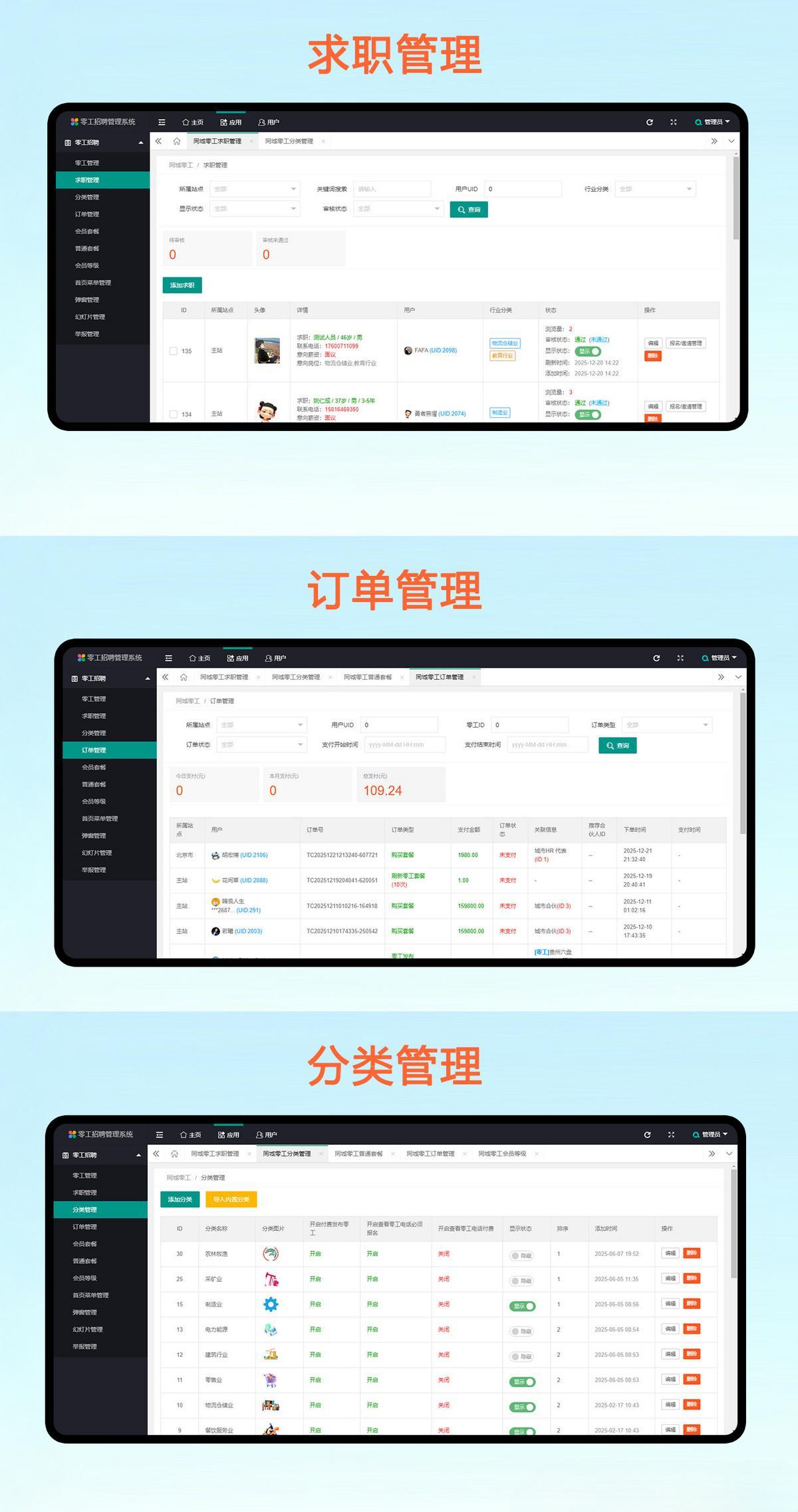 可以设置免费发布或者付费发布零工信息;