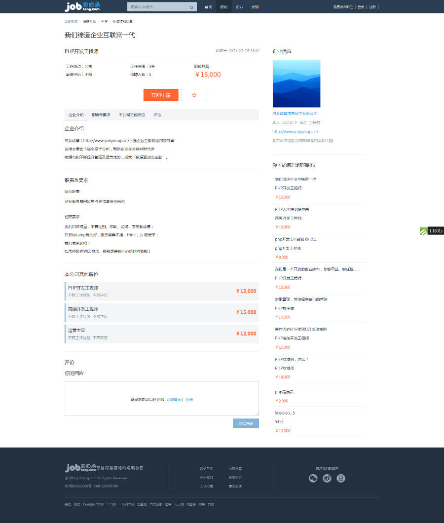 网站说明:本网站是根据当前流行thinkphp框架开发而来。都是根据流行技术开发的。本网站分为前台与后台,是功能非常网站非常强大的招聘系统平台网站。
