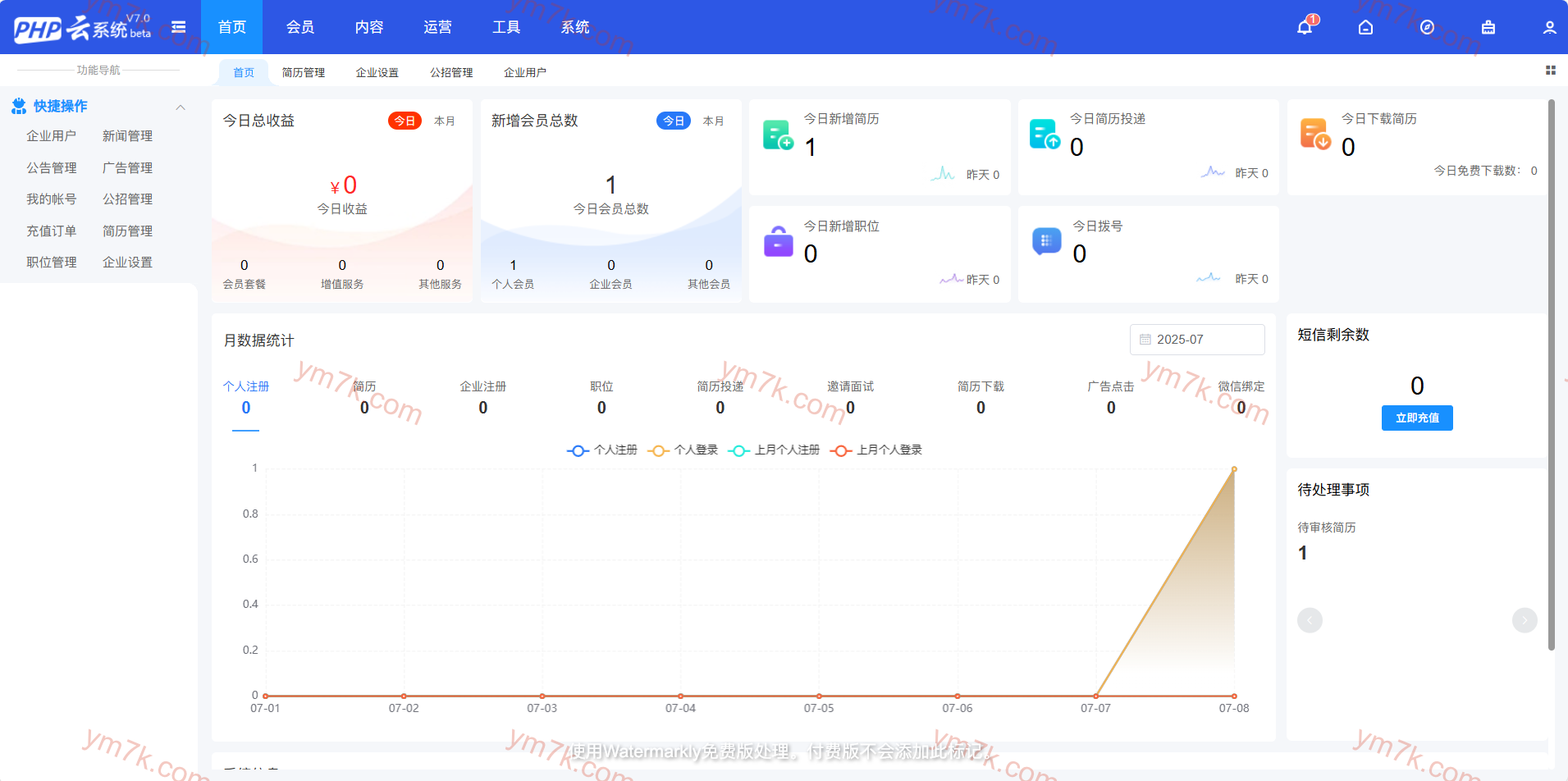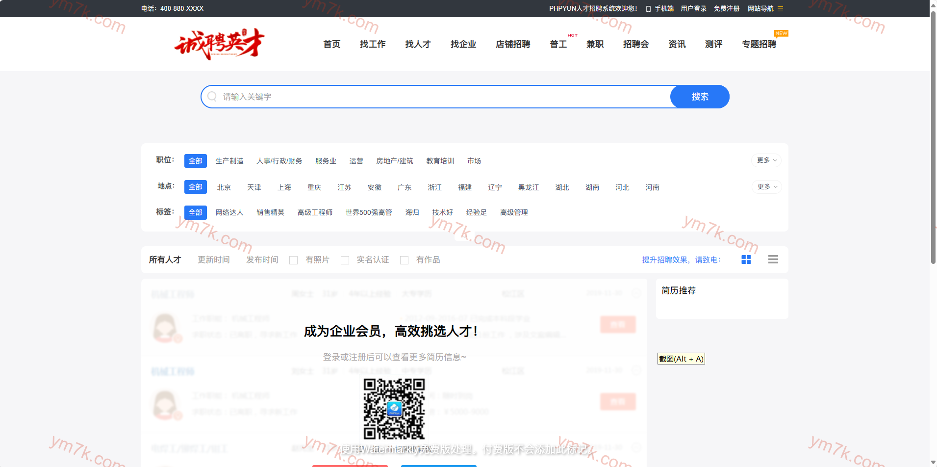 这是一款支持多分站运营的招聘求职解决方案,涵盖企业会员管理、智能简历投递、微信生态对接、视频面试等前沿功能,采用PHP+MySQL开发,支持二次开发。