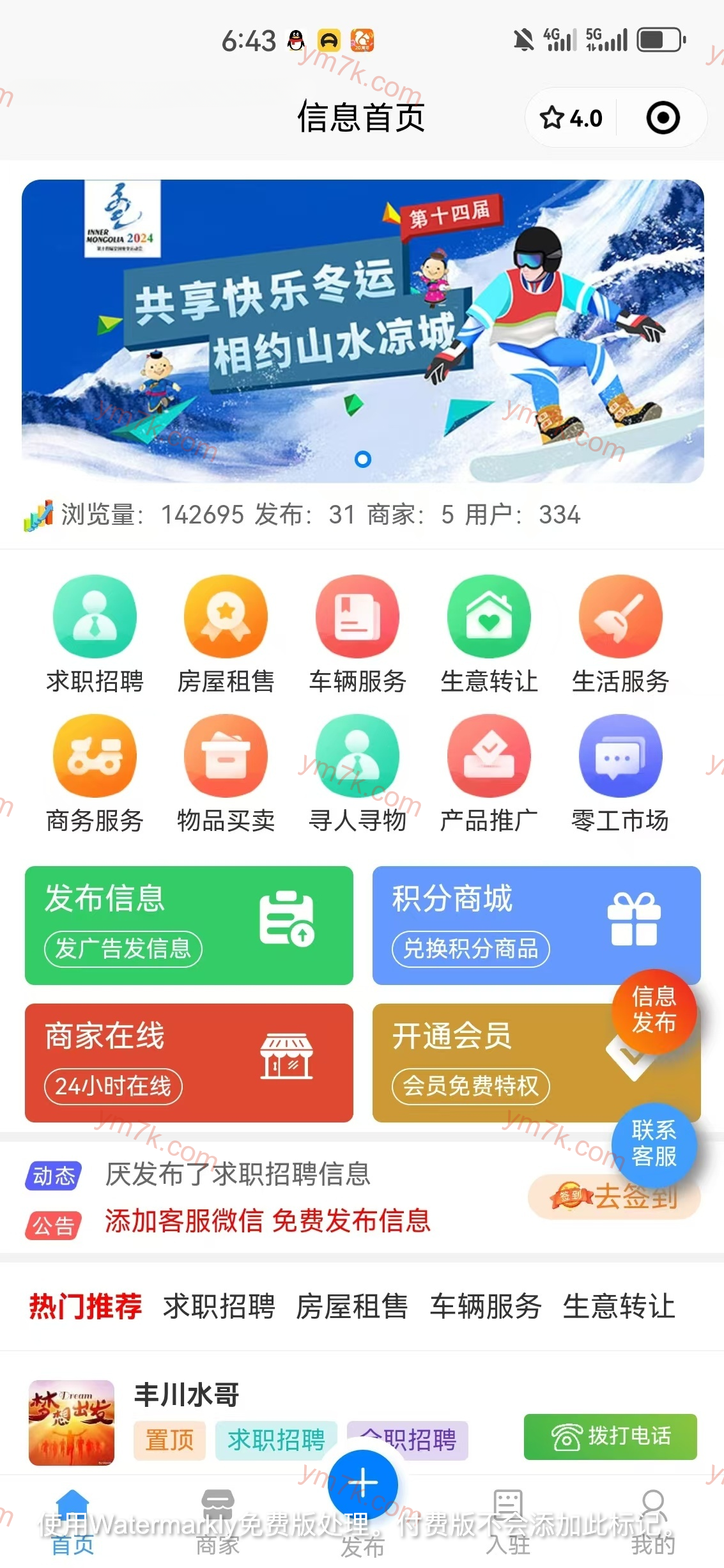 功能不够可联系二次开发收费服务。如不满足需做定制,可购买前咨询开发费用。 店主接二开订单支持平台担保。 功能介绍: 1.积分商城 2.推广分享,收益提现 3.会员中心 4.幸福值兑换 5.好店推荐 6.商户入驻 7.招聘求职 同城信息运营